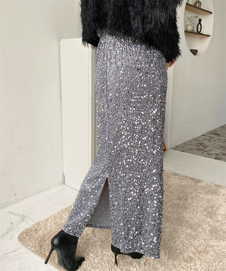 aラインスカート ハイウエスト ロングスカート スパンコール