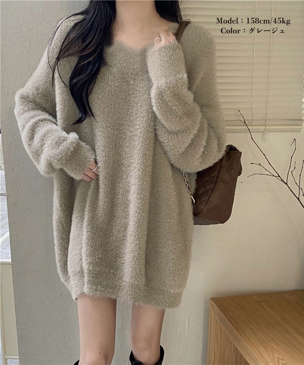 セーター 無地 Vネック ゆったり シャギー 着回し 大人 シンプル カジュアル セクシー きれいめ