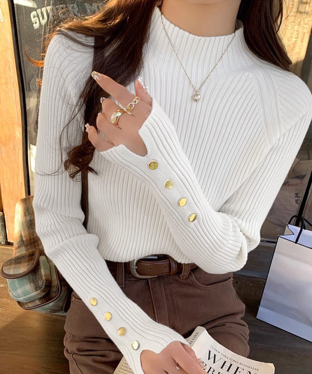 プチハイネック秋服 長袖ニットきれいめ 可愛いニットお洒落