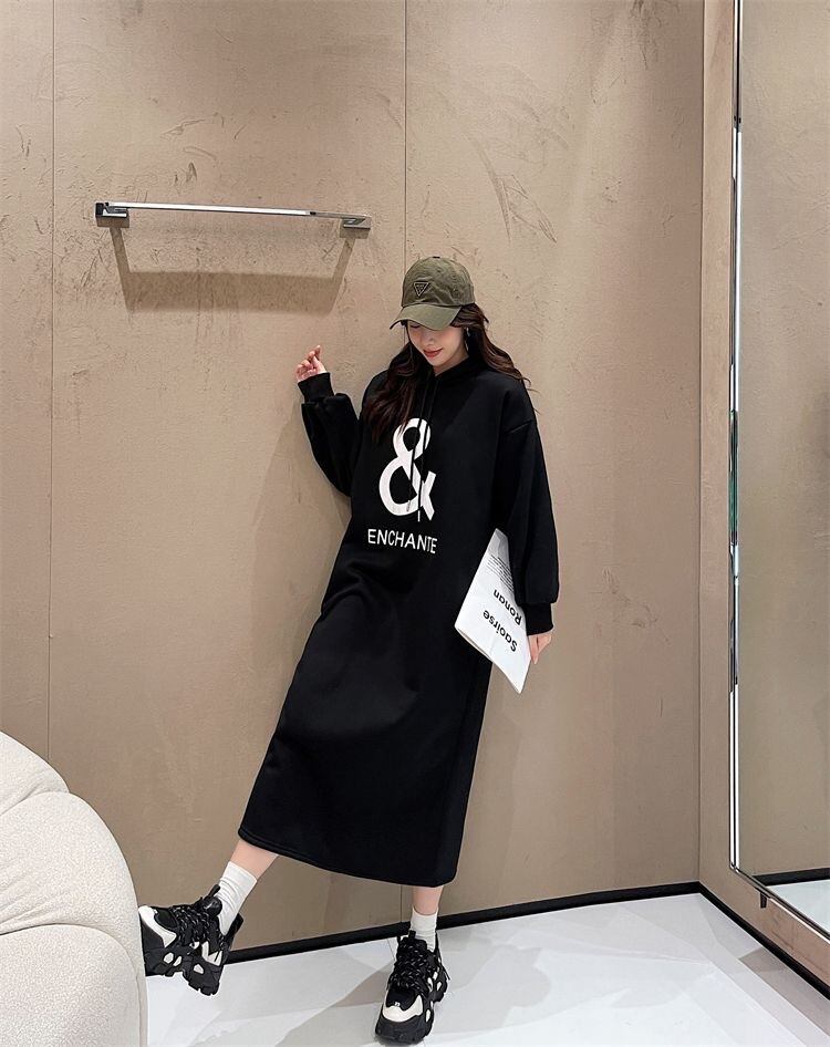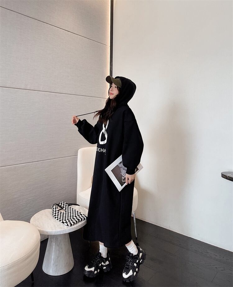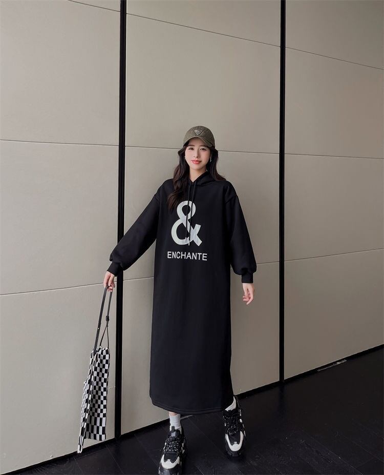大きいサイズ秋冬新作 韓国風 レディース 長袖 帽子付きワンピース パーカーLL-4L